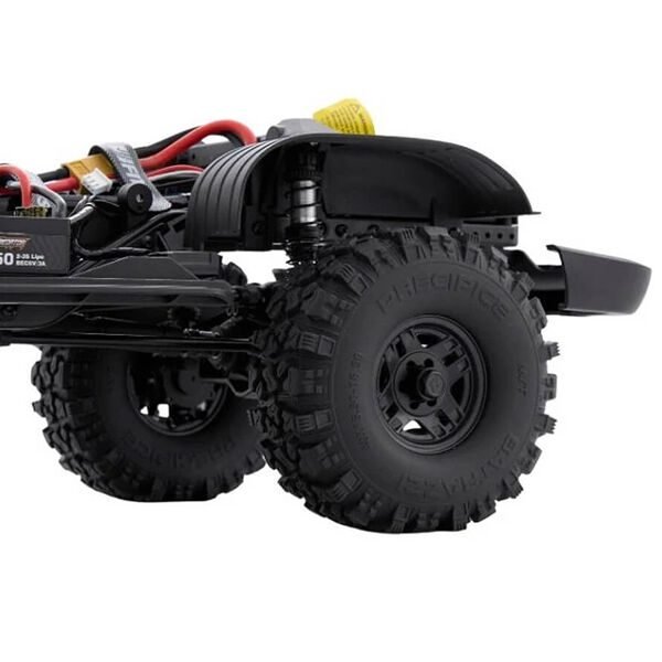 The LC80 is built on the FCX10 P chassis, designed for high performance with metal gears, ball bearings, and four-link suspension. The mid-mounted power unit integrates a 2-speed transmission, transfer case, and brushless motor. The portal axles increase ground clearance for better off-road capabilities. FMS uses high-quality digital servos, a 50A ESC, and a 3541 brushless motor for smooth, precise control, including slow crawling capabilities. Additionally, two-stage shock springs offer enhanced shock absorption, making the LC80 ready for any terrain right out of the box.