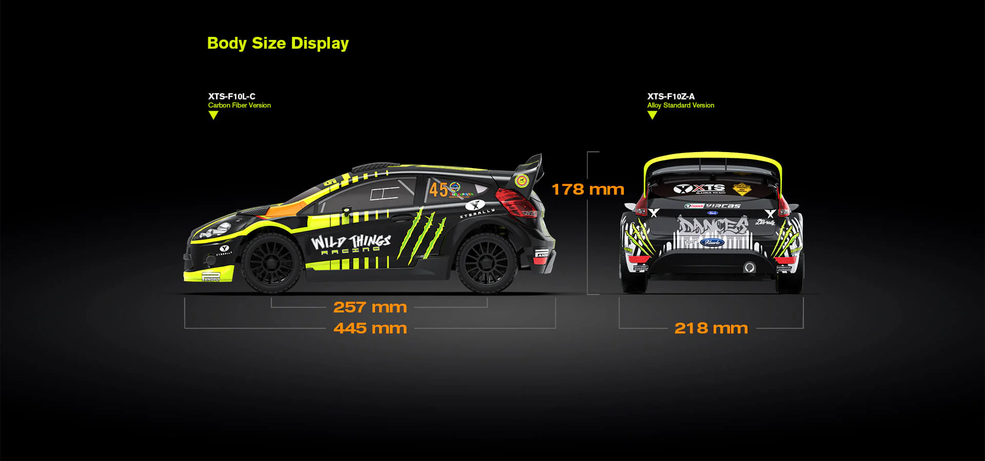 STRONG AND DURABLE CAR SHELL: XTS-F10 Rally Car body is made from 1.2mm PC material for durability and impact resistance. It features pre painted patterns and multiple realistic components, effectively replicating details of real race cars to enhance authenticity and performance.